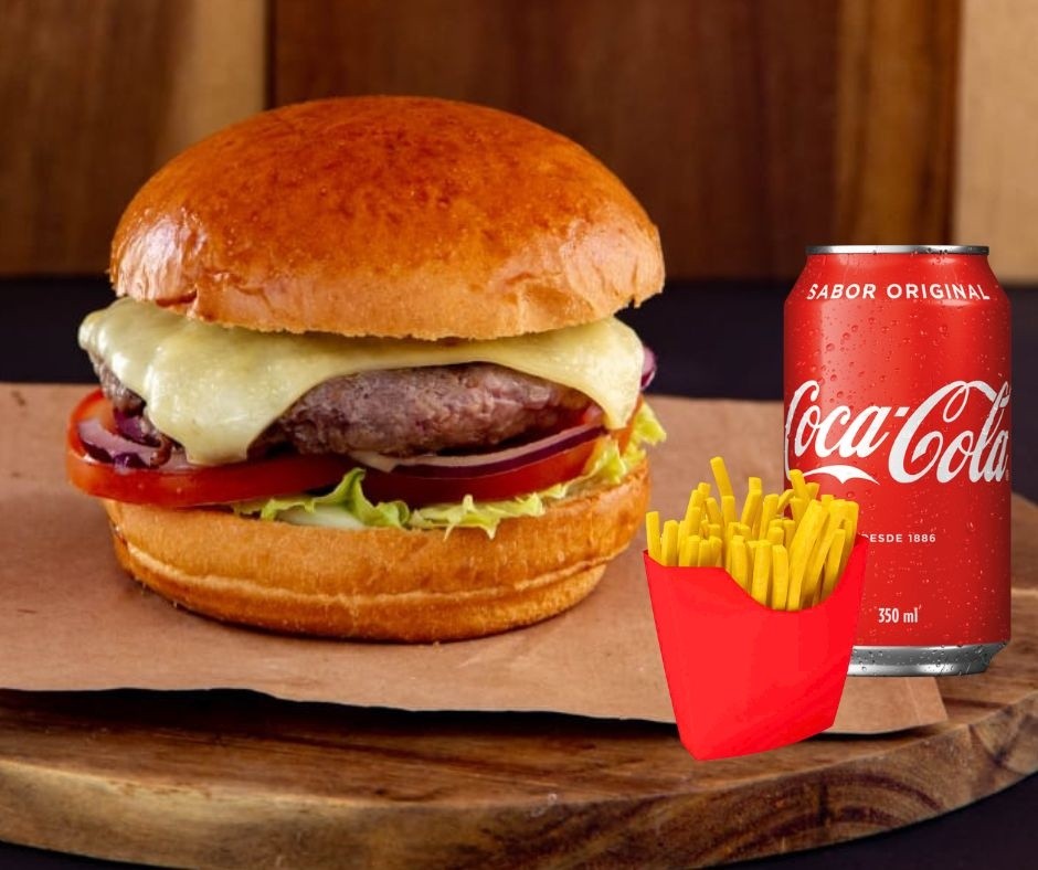 1 Burger Salada, 1 Fritas Indivual, 1 Coca Lata